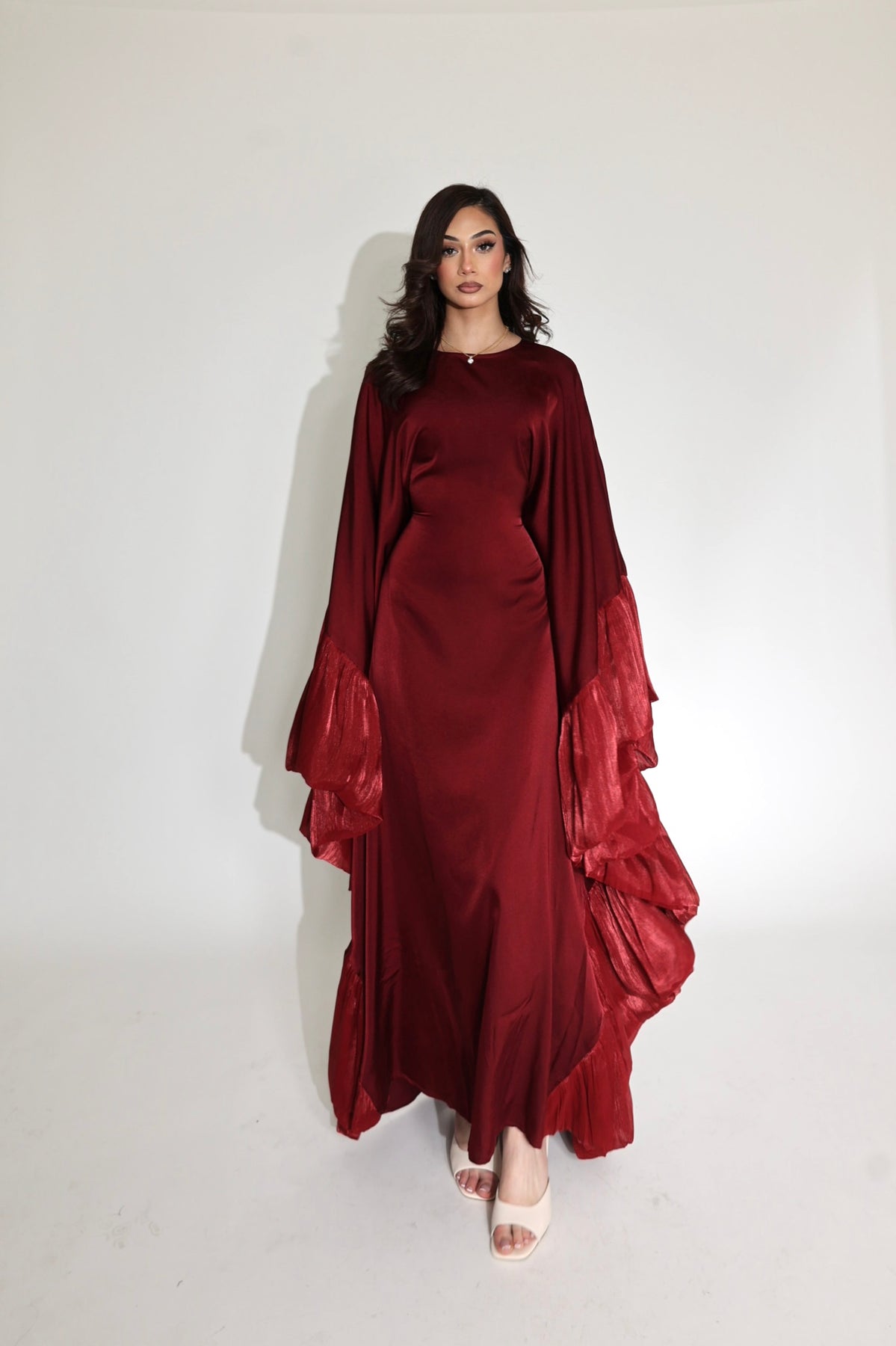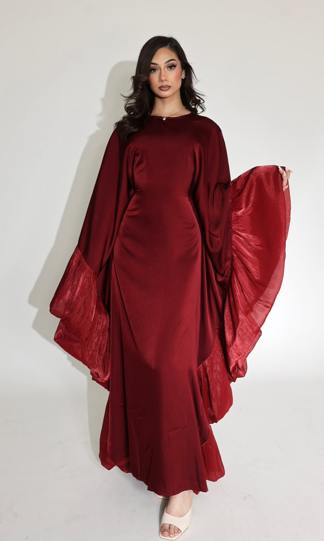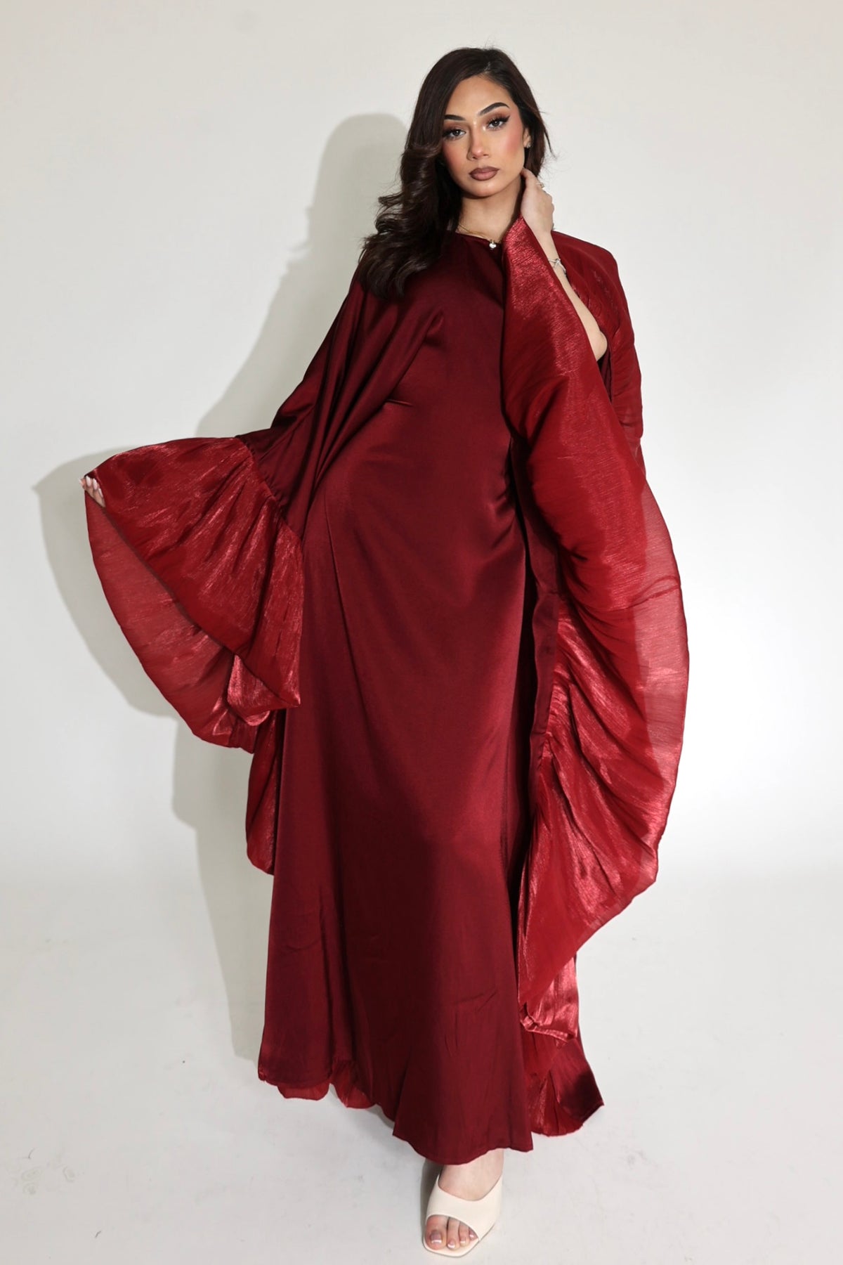 Elevate your modest fashion with our Yara Butterfly Abaya, a stunning blend of elegance and grace. This luxurious abaya features a flowing silhouette with dramatic wing-like sleeves, offering both comfort and sophistication. Designed from premium shimmering fabric, it drapes beautifully, creating a regal yet effortless look.