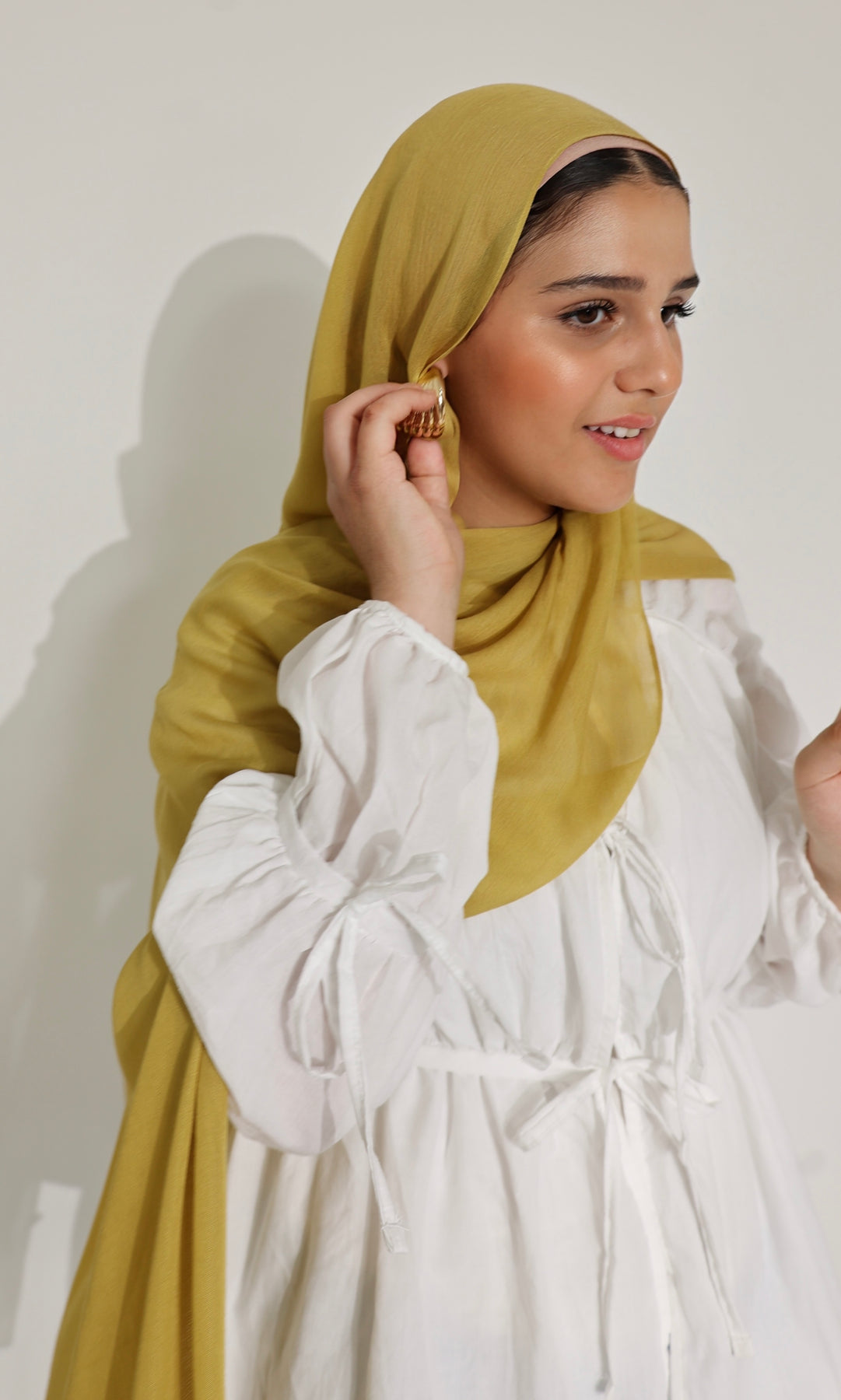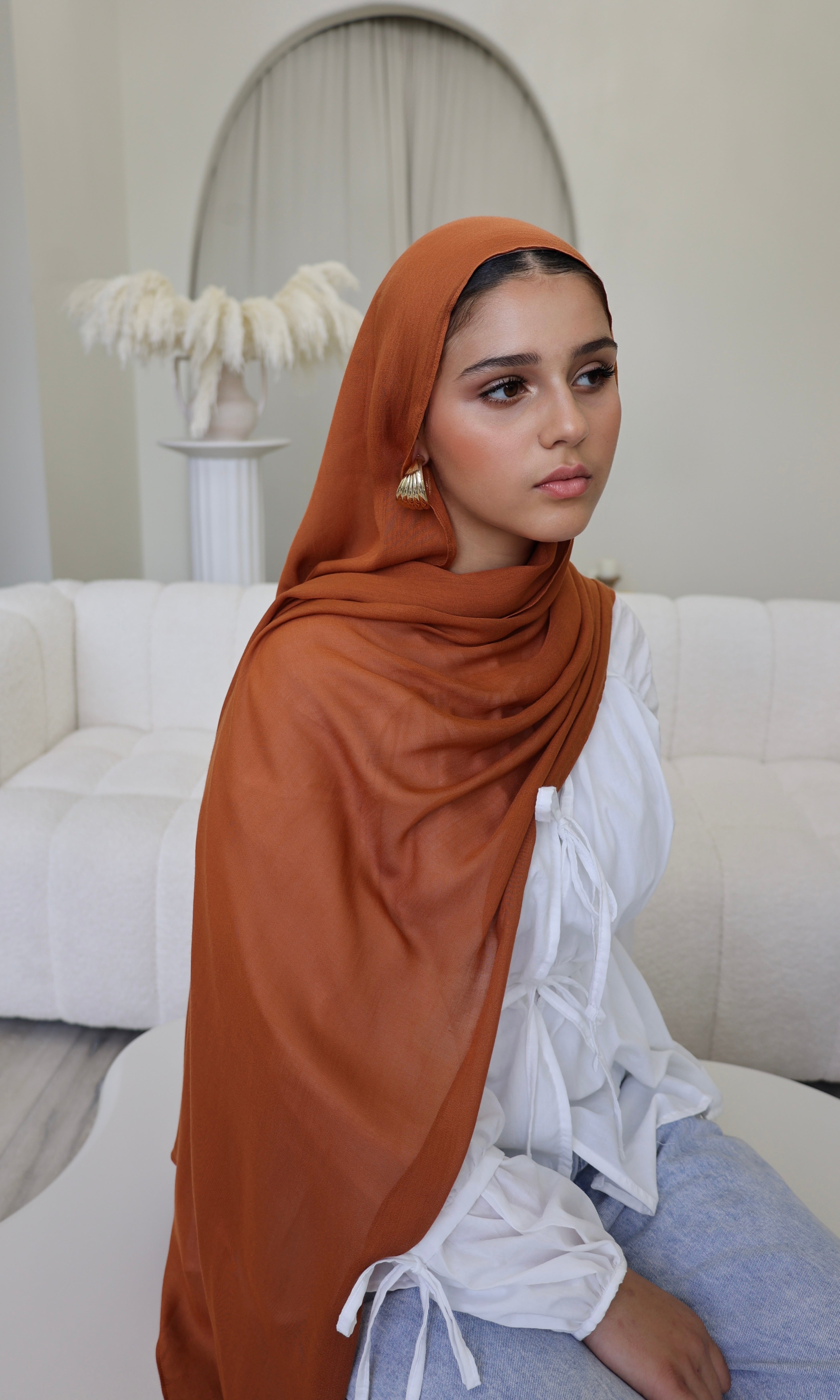 Rooted in natural beauty, Golden Clay is a warm terracotta-toned chiffon hijab that radiates timeless elegance. Its smooth, semi-sheer fabric drapes effortlessly, giving you a refined and polished look with minimal effort. Perfect for both everyday wear and elevated styling, this hijab adds a grounded, earthy charm to any outfit. Soft, breathable, and versatile — it’s a staple every wardrobe needs.