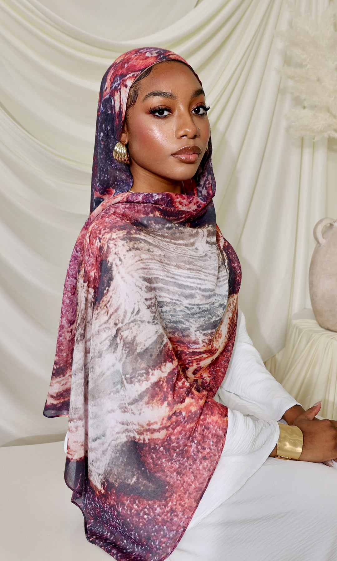 Fierce meets elegance in our Crimson Drift hijab — a statement piece blending volcanic reds, charcoals, and soft ivory like molten rock meeting ocean waves. Crafted from premium modal, it’s lightweight, breathable, and fluid in movement. Wear it when you want your look to speak strength, depth, and unmistakable style.