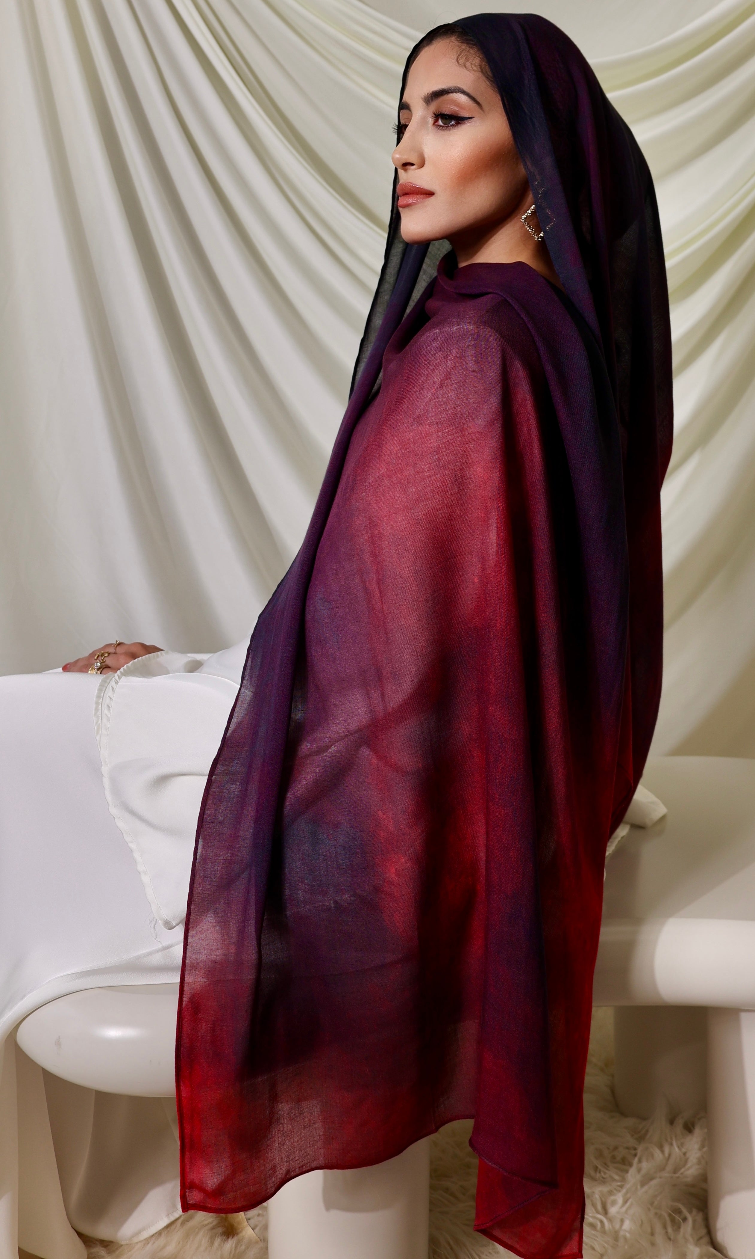 Dive into the richness of color with our Plum Mirage hijab — a fluid blend of smoky greys, deep plums, and soft mauves that create a watercolor effect on luxe modal fabric. Lightweight yet bold, this piece drapes like silk and feels like a second skin. A perfect statement scarf for days you want your hijab to do the talking.