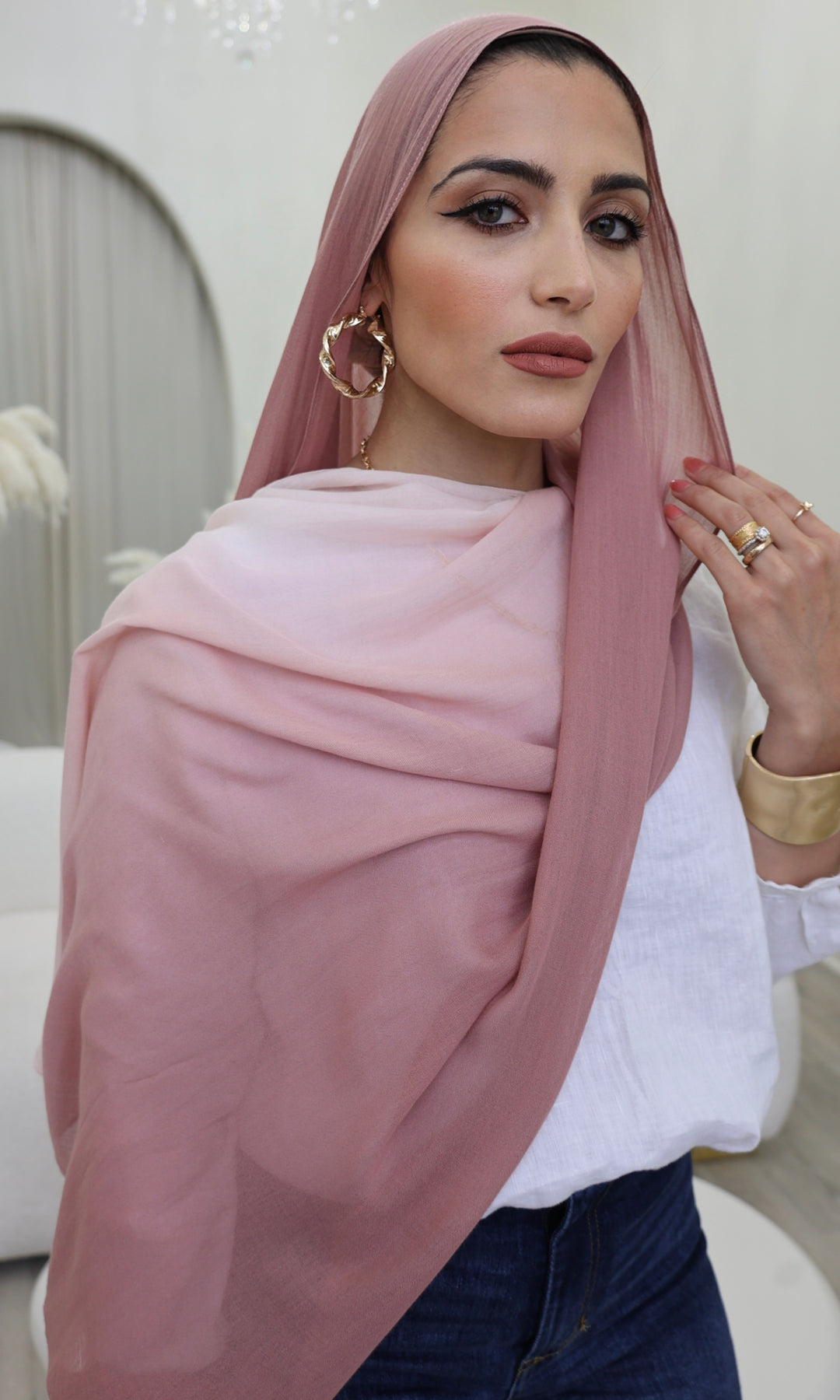 Soft elegance meets modern flair in the Rose Fade Modal Hijab. This beautiful piece features a seamless ombré gradient that flows from blush pink to deep rose, offering a romantic and graceful finish to any look. Crafted from premium modal fabric, it’s featherlight, breathable, and effortlessly drapey—perfect for everyday wear or dressing up. Add a dreamy touch to your outfit with this stunning and versatile hijab.