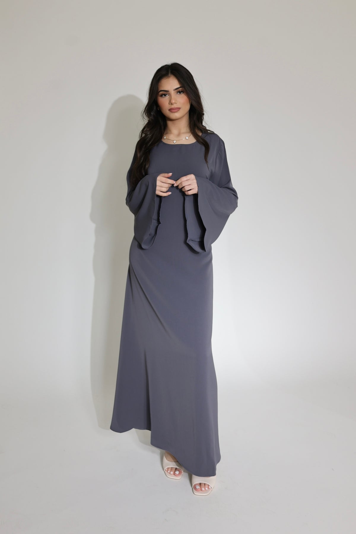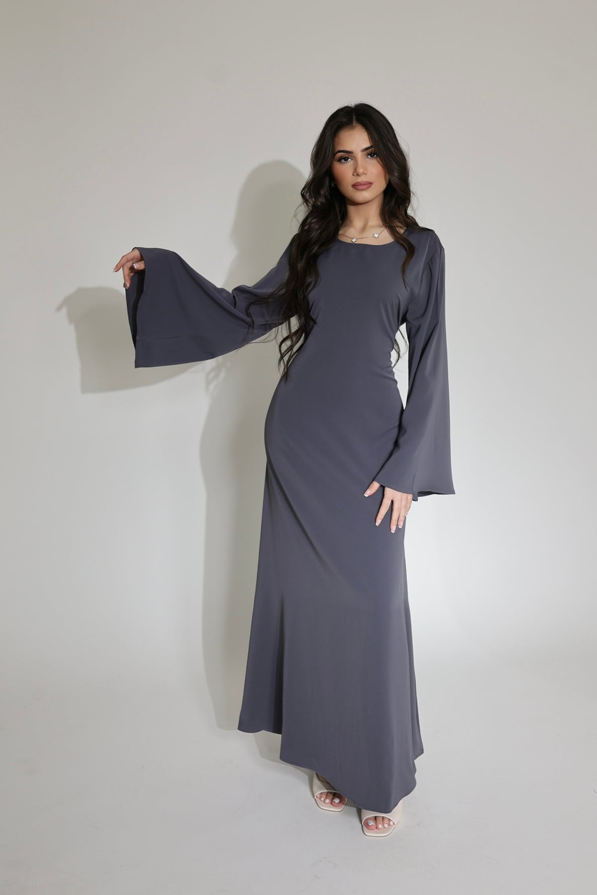 Turn heads with this effortlessly elegant Smokey blue maxi dress, crafted from premium Nida fabric for a soft, luxurious feel and graceful drape. Designed with a flattering silhouette, this dress features wide bell sleeves that add a touch of drama and sophistication, perfect for both formal occasions and elevated everyday wear. The lightweight, breathable Nida fabric ensures all-day comfort, while the rich black hue exudes timeless charm. Pair it with heels and a clutch for a chic, polished look.