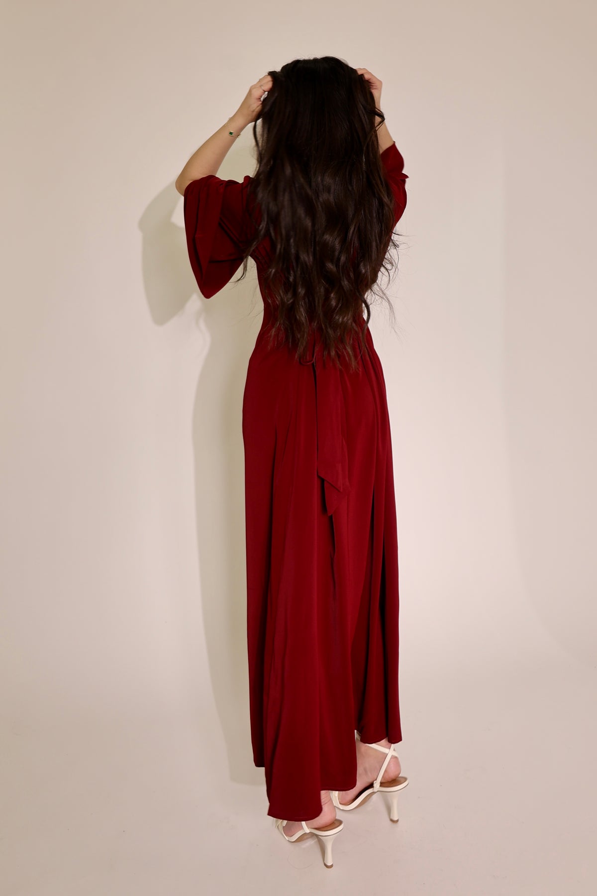Turn heads with this effortlessly elegant burgundy maxi dress, crafted from premium Nida fabric for a soft, luxurious feel and graceful drape. Designed with a flattering silhouette, this dress features wide bell sleeves that add a touch of drama and sophistication, perfect for both formal occasions and elevated everyday wear. The lightweight, breathable Nida fabric ensures all-day comfort, while the rich burgundy hue exudes timeless charm. Pair it with heels and a clutch for a chic, polished look.