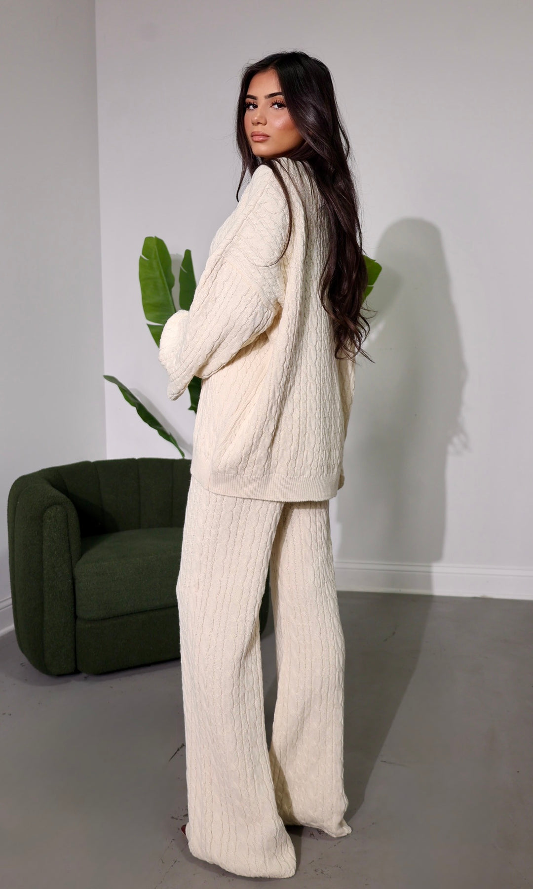 This versatile set is perfect for casual days, travel, or cozy nights in. The timeless knit design and neutral shades make it a must-have for your wardrobe.