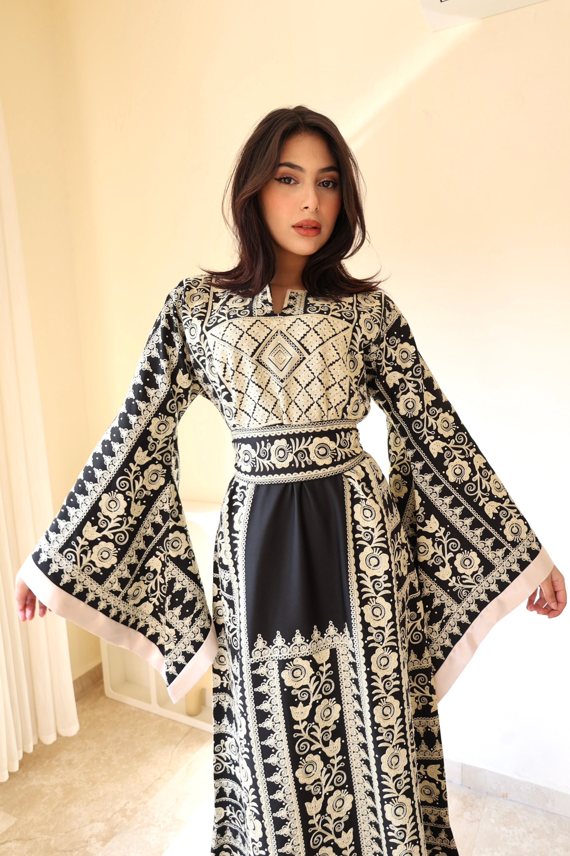 As a statement piece for special events, this thobe not only celebrates rich heritage but also exudes sophistication, making it a memorable and striking choice for any celebratory gathering.