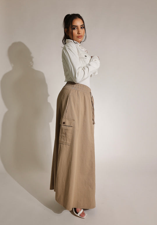 The perfect cargo skirt is here! This cargo skirt can be dressed up or down. Has an elastic band so you can wear it on the waist or hip. Comes in 3 colors.