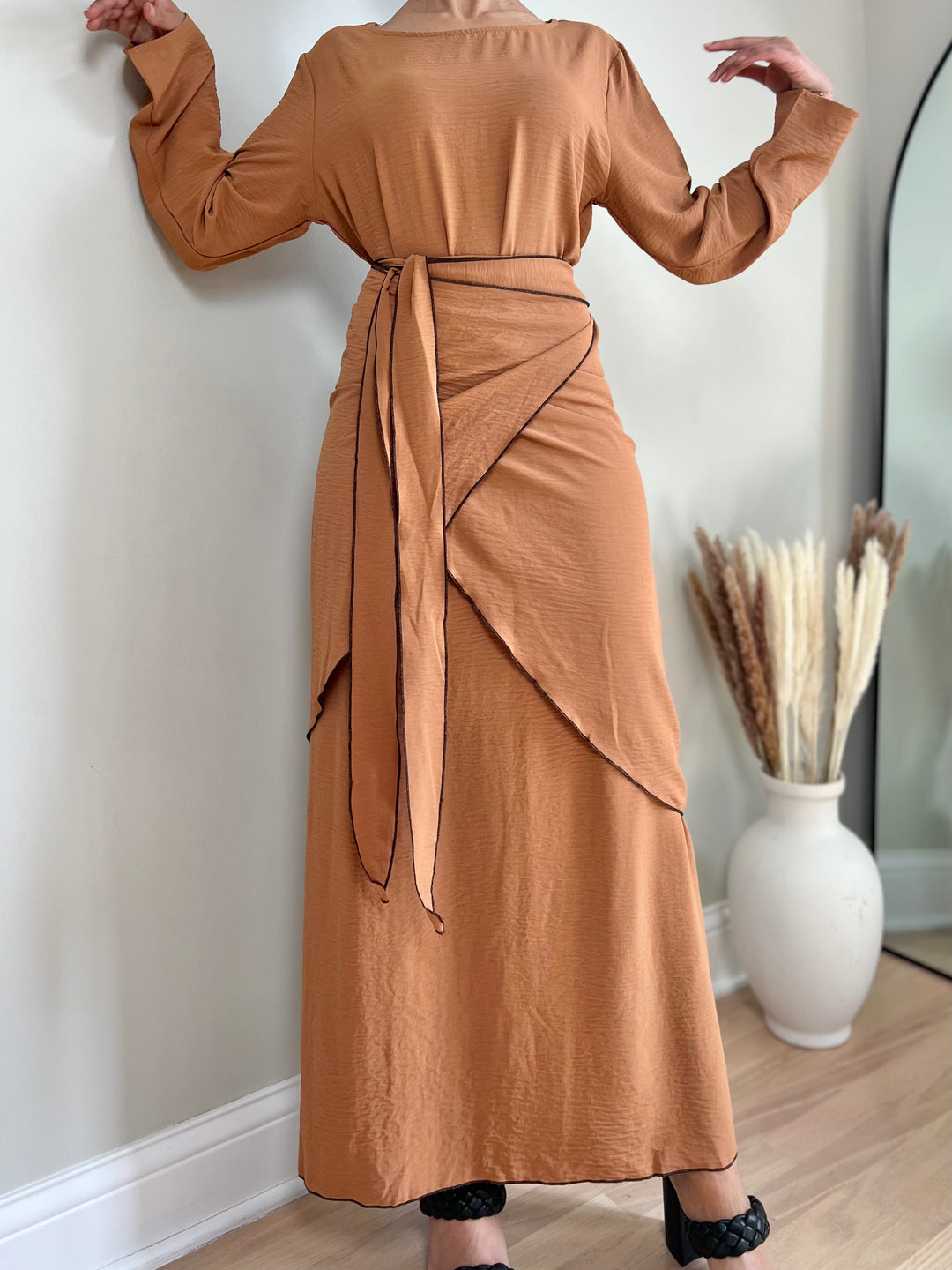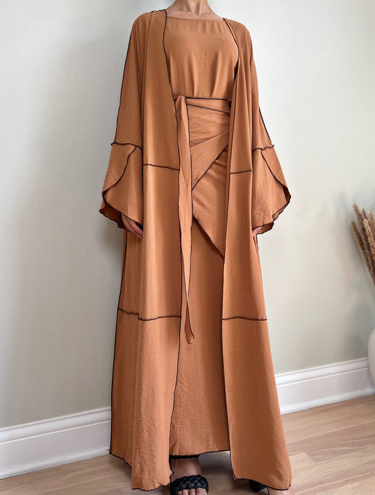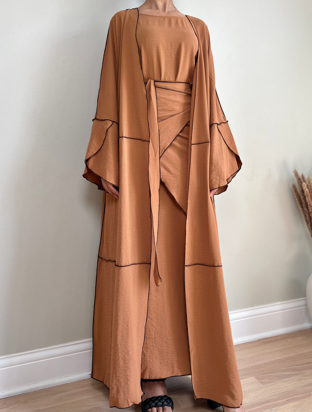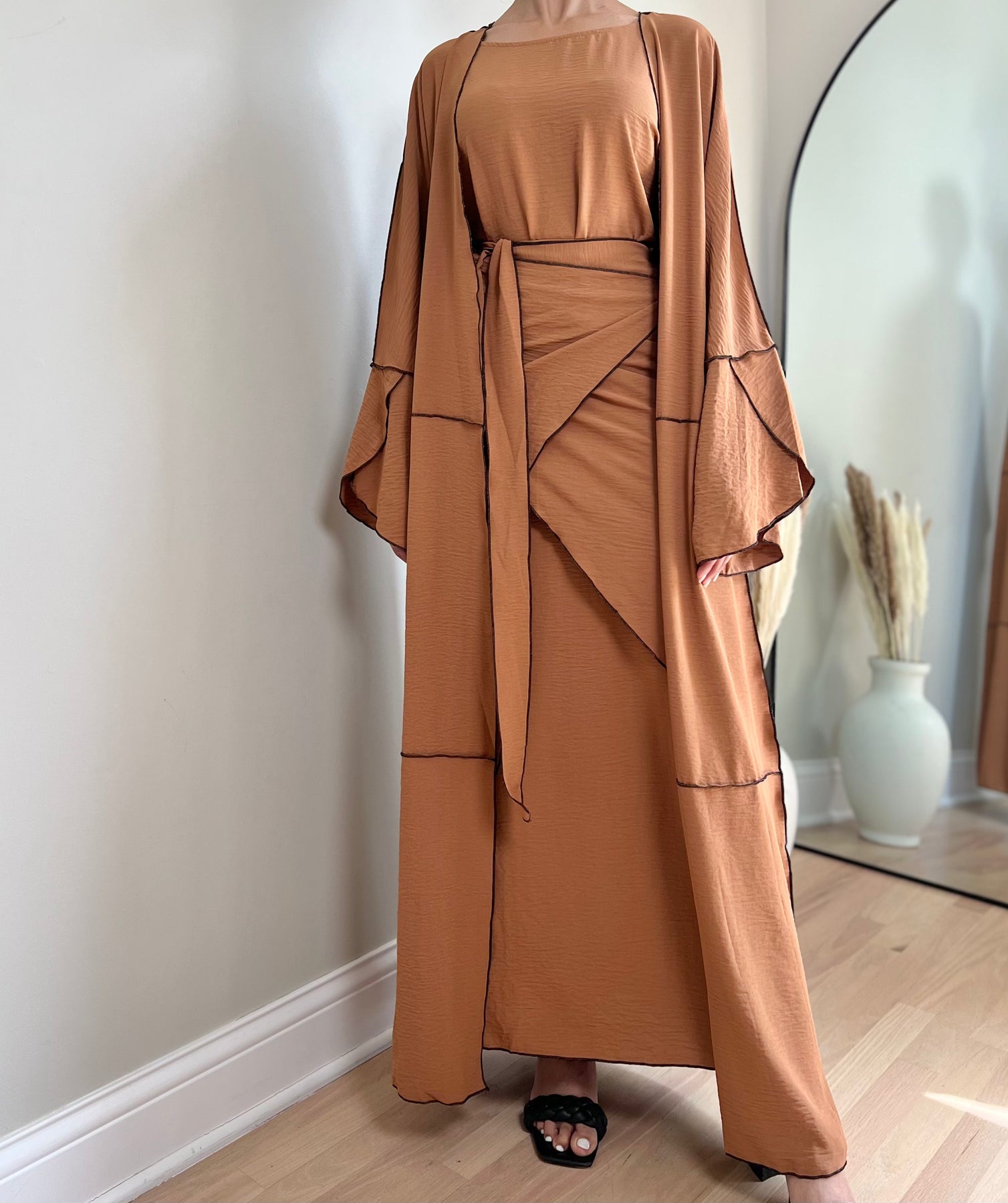 Luxurious 3 pcs Abaya set can be wrapped many ways.