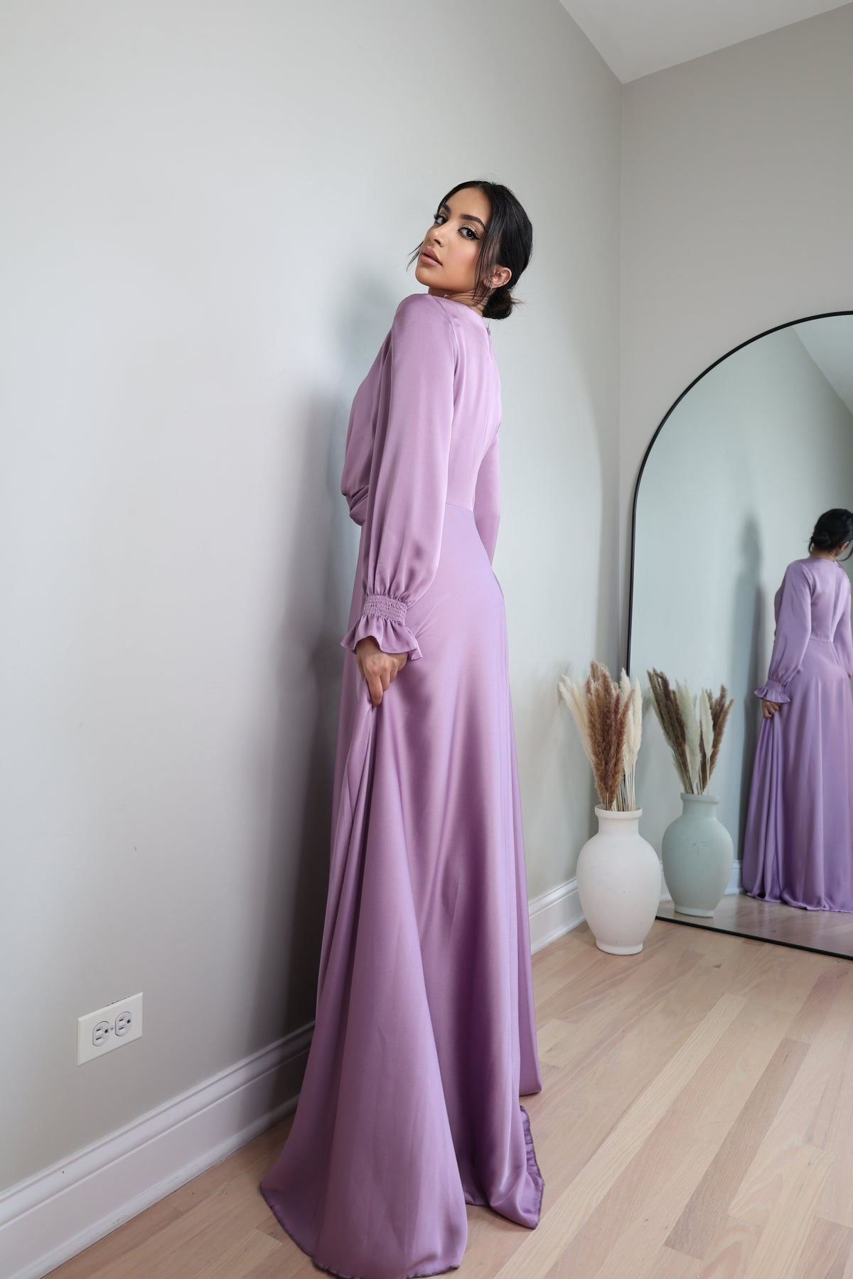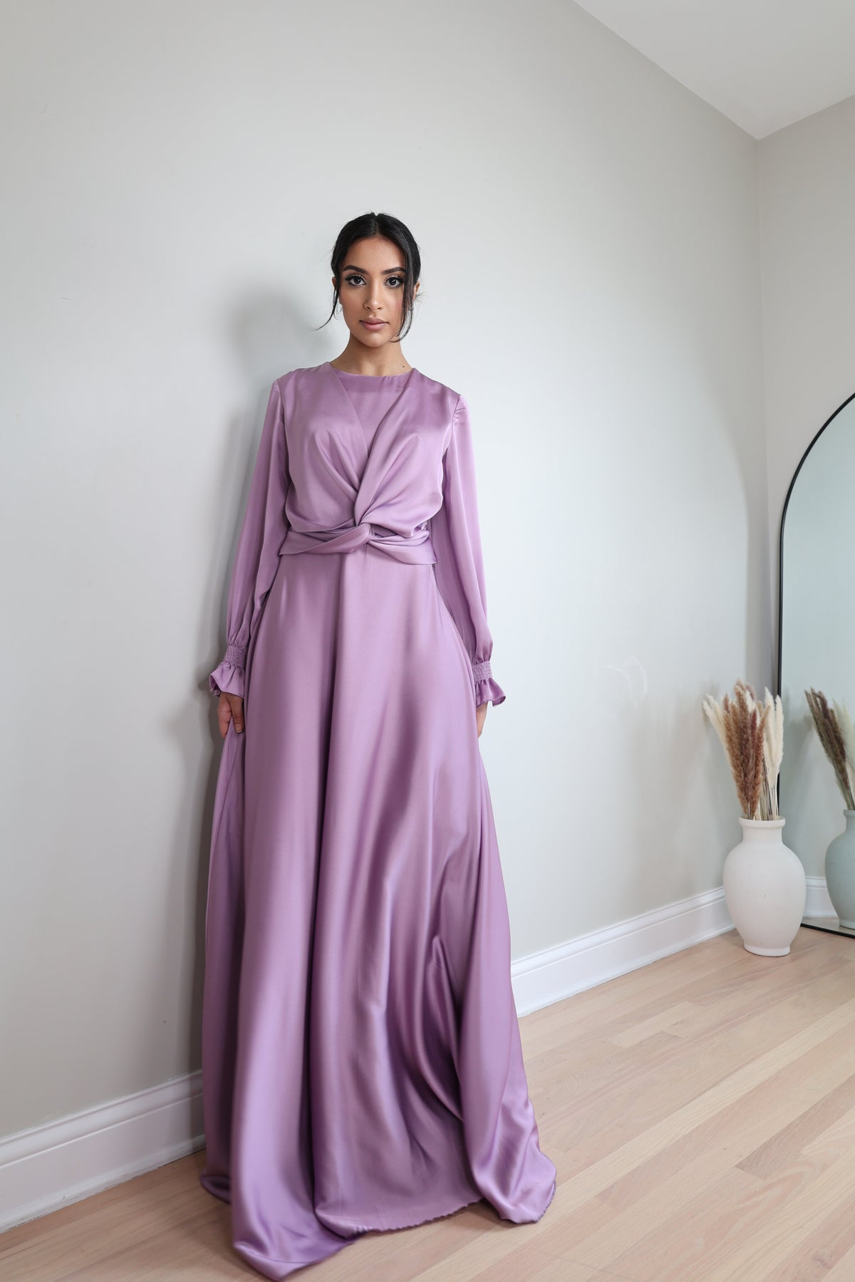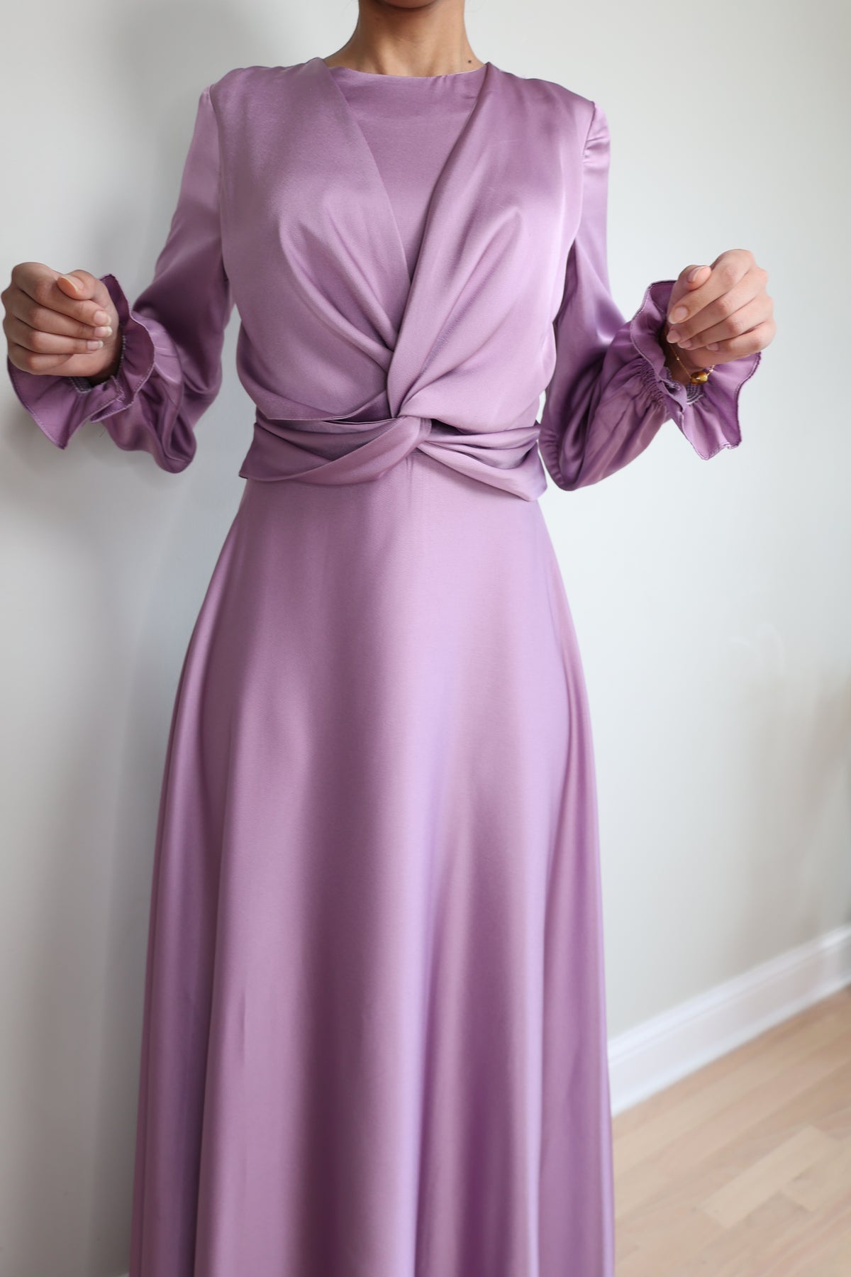 This beautiful slimming satin dress gracefully flows and flatters any body type! Ties around the waist to give a smaller waist look!! You are going to looove this dress!!
